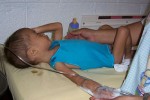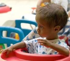 Après 14 mois de soins, il souffre toujours de malnutrition, mais à un niveau modéré. Il a appris à marcher et à parler. Il est beaucoup plus autonome, il pèse maintenant 20,4 livres. Après le retour de l’enfant dans sa